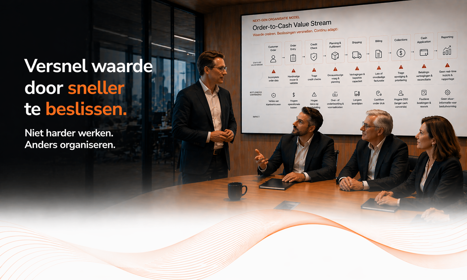 We maken zichtbaar waar waarde vertraagt. End-to-end, over teams en silo’s heen.