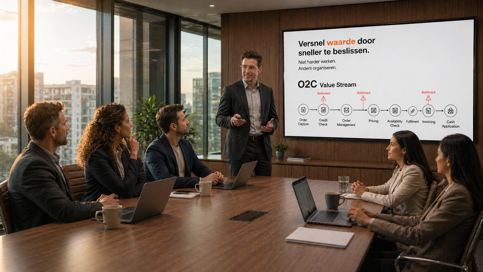 Analyseer structurele oorzaken van vertraging en inefficiëntie Identificeer bottlenecks, hand-offs en besluitvormingsvertraging Confronteer leiderschap met data en impact op business (cashflow, klanttevredenheid)